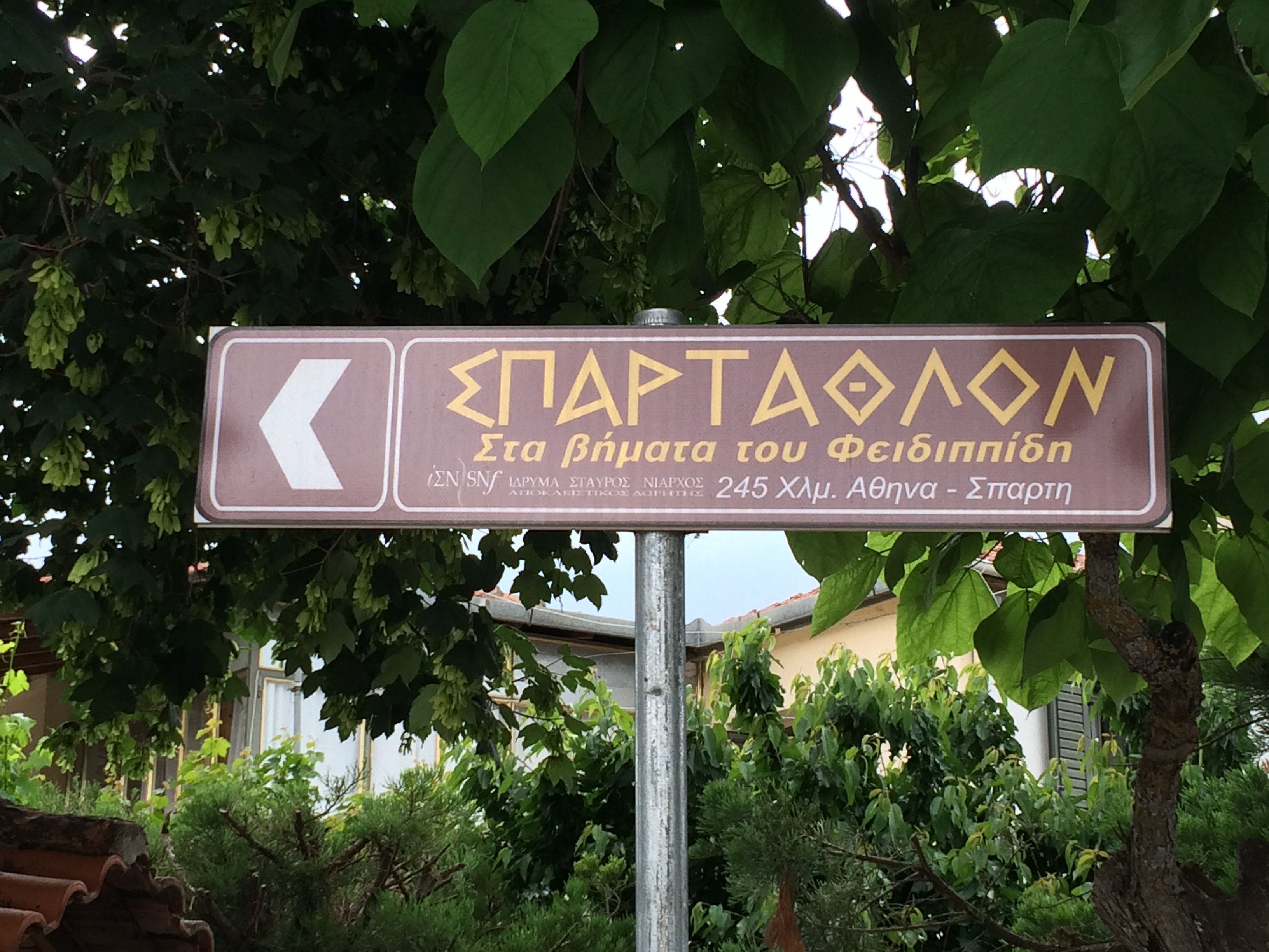 Sign for the route of the Spartathlon in Tegea, Peloponnese
